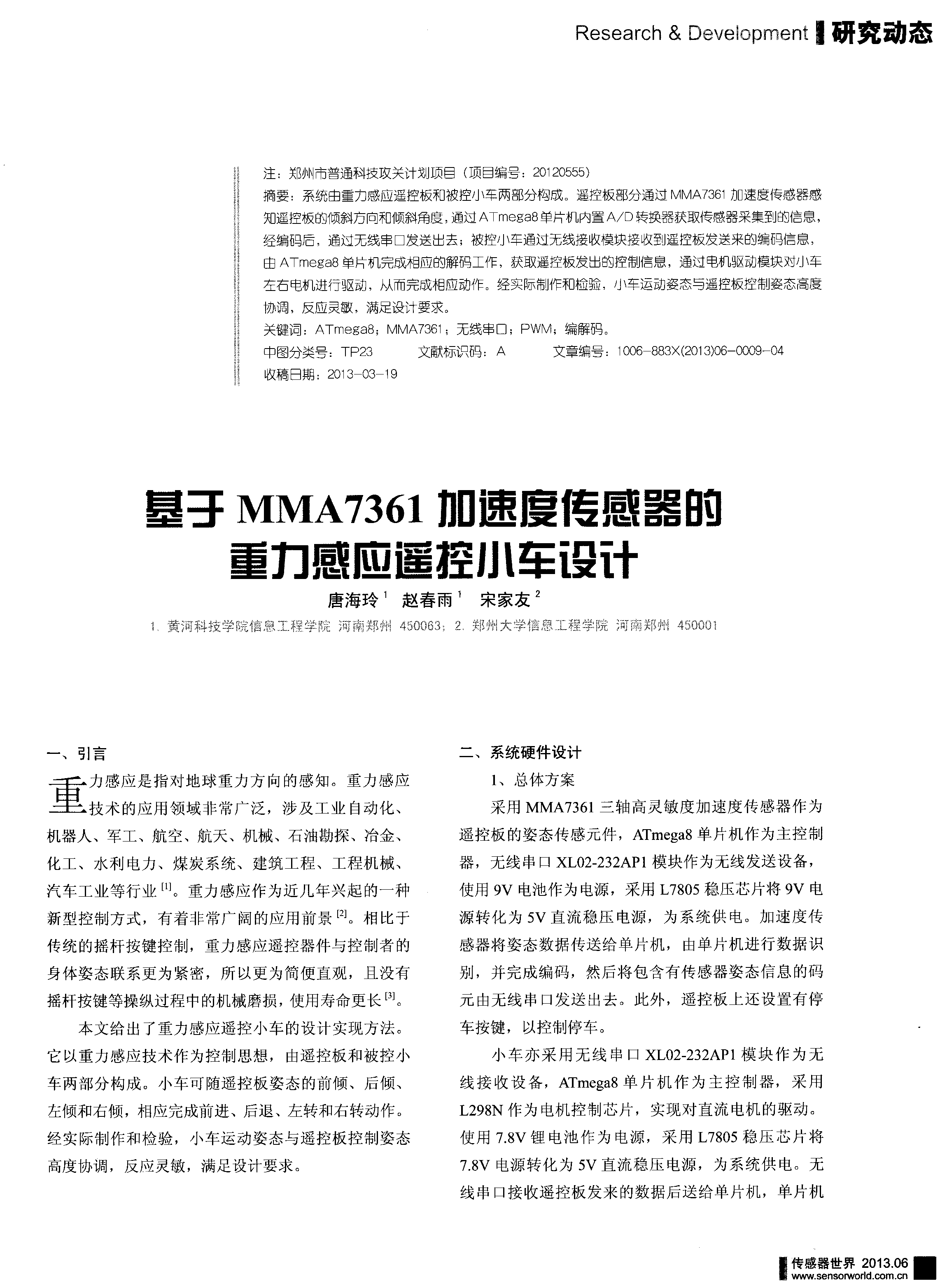基于MMA7361加速度傳感器的重力感應(yīng)遙控小車設(shè)計(jì)