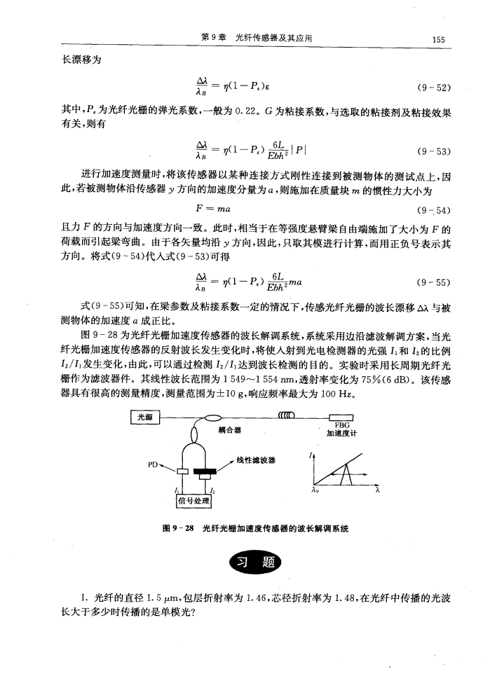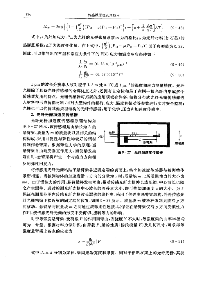 光纖光柵加速度傳感器原理結構如 圖9 - 27所示,該傳感器是由梁長為L的