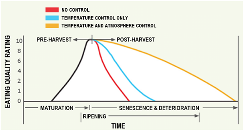 在這些因素應(yīng)用合適的地方,控制和改變環(huán)境能夠非常明顯的延長(zhǎng)某些水果和蔬菜貨物的存儲(chǔ)壽命。減緩它們的代謝速率可以延遲產(chǎn)品的自然成熟而不影響它的風(fēng)味和口感。