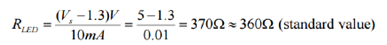 倘若采用不同供電電源,關于限流電阻和上拉電阻具體取值可以參考上圖,也可以采用如下的公式計算,正常情況下,光電二極管正向壓降取1.3V,限流10mA(視不同液體而定),若5V供電則