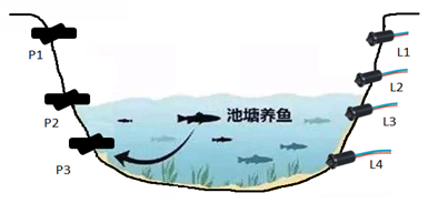 (2)當池內水位低于正常水位時:L3狀態從on變為off,即變為輸出一高電平,L1、L2和L4狀態不變,從而當主控系統接收到了L3這一傳感器從低電平變為高電平的輸出變化時,將啟動P2(給水泵)向養殖塘內注水。