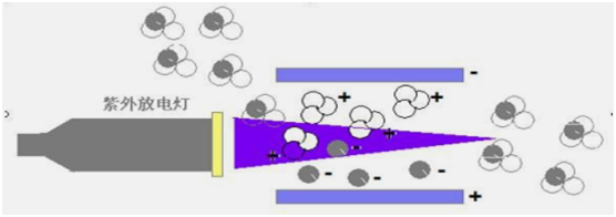 有機氣體被離子化需要能量,如果待測氣體被電離的能量小于UV燈的能量,那么該氣體就可以被離子化,而且每種氣體的被電離所需要的能量也不同,例如氨氣(NH3)被電離所需要的能量為10.16eV,苯(C6H6)則為9.25eV。