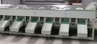 負責果品上線緩沖、勻果提升輸送、并將水果適當翻轉以便人工分揀出損毀的水果。