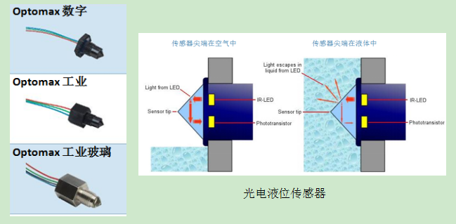光電液位傳感器是根據(jù)光線在兩種介質(zhì)的反射情況判斷此位置是有液體還是沒(méi)有液體的,兩種介質(zhì)分別是空氣和液體。傳感器頭部暴露在空氣中時(shí)屬于無(wú)水狀態(tài),光線直接反射回傳感器的接收器;液體浸到傳感器頭部時(shí)屬于有水狀態(tài),光線會(huì)折射在液體,只有少量或沒(méi)有光線反射回接收器。傳感器根據(jù)這兩種狀態(tài)判斷輸出不同的電平信號(hào)。根據(jù)光電液位特性,安裝在箱體某個(gè)刻度,若防凍液過(guò)少時(shí),發(fā)出警報(bào)。提醒車(chē)主及時(shí)保養(yǎng)