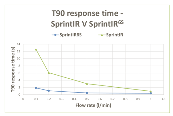 肺功能檢測參數(shù)中的CO2產(chǎn)生量推薦GSS的CO2傳感器SprintIR系列,其使用獲得專利的 NDIR 固態(tài) LED 光學(xué)技術(shù),使傳感器能夠在不影響參數(shù)性能的情況下響應(yīng)快速變化的二氧化。其中SprintIR-R 高速二氧化碳傳感器是一系列二氧化碳傳感器的一部分,旨在提供前所未有的高速測量能力。每秒最多可讀取 50 個讀數(shù),非常適合需要以高重復(fù)率進(jìn)行單獨(dú)測量或二氧化碳濃度快速變化的應(yīng)用。