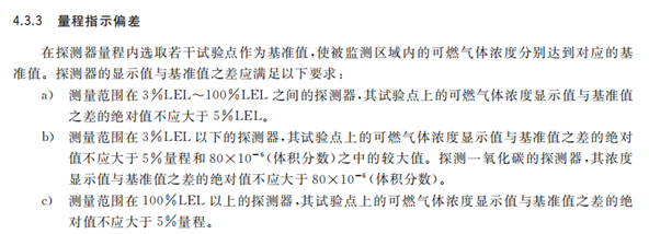 同時也要求有濃度顯示,并且對量程指示偏差范圍也做了規定:
