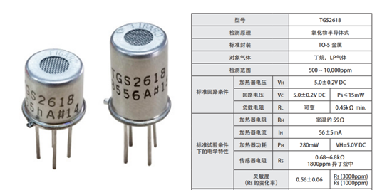 TGS2618:對液化氣靈敏度高、體積小、低功耗、應用簡單