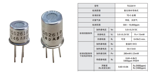 TGS2619對甲烷靈敏度高、體積小、低功耗、應用簡單