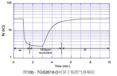 2、TGS2618-D00對(duì)可燃?xì)怏w響應(yīng)迅速。(GB 15322 里對(duì)T90響應(yīng)時(shí)間的要求是30秒內(nèi))
