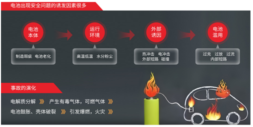 但是,這些新能源汽車中以鋰電池為主,基本上都是以鋰電池作為儲能器件。眾所周知,鋰是一種非常活潑的元素,這種特性使得鋰電池在一些情況下出現(xiàn)熱失控,比如熱沖擊、電沖擊、短路、碰撞等,就很可能發(fā)展為起火爆炸的狀況了,若是此時駕乘人員不能及時發(fā)現(xiàn)并撤離,那么就很有可能造成人員傷亡了。