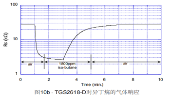 2、TGS2618-D00對可燃?xì)怏w響應(yīng)迅速(GB 15322.2-2019 對T90響應(yīng)時間的要求是30秒內(nèi))