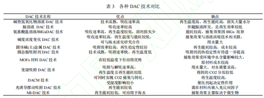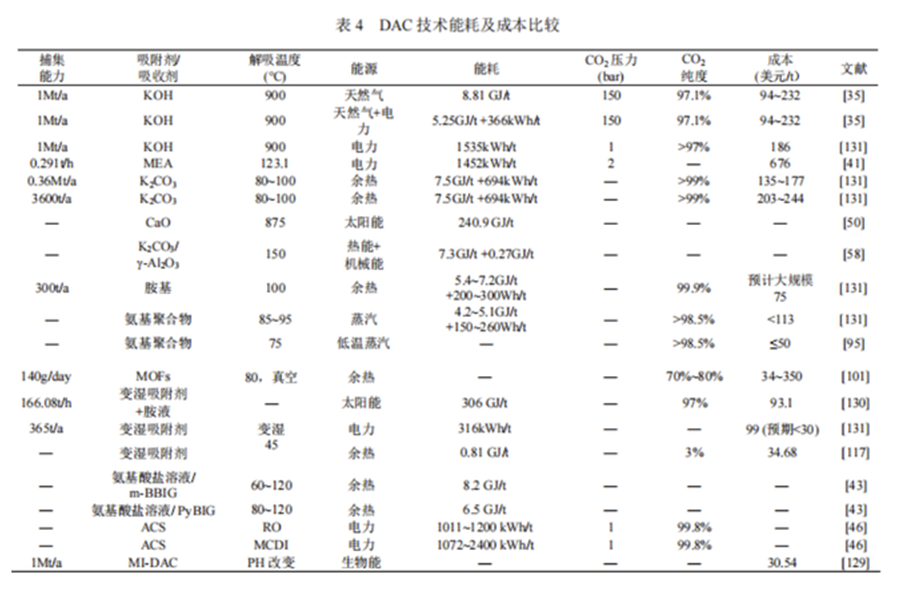 ⑤光誘導擺動吸附與MI-DAC技術正處于研究初級階段,目前看來再生能耗較低,十分具有經濟性。