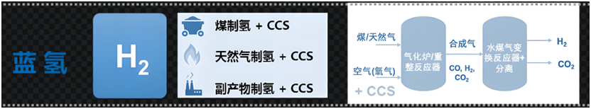 藍氫也是利用化石燃料(主要是天然氣)生產的氫氣,但與灰氫不同的是,藍氫在生產過程中采用了碳捕捉和碳封存技術,這有助于降低碳排放強度,使得藍氫的碳排放量低于灰氫。