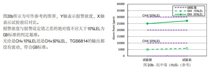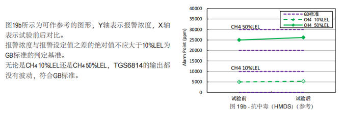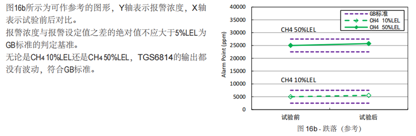 就以GB15322.1-2619為判斷依據,用TGS6814做出來的報警器完全可以符合標準。線性度誤差這些自不必說,必須是超規格滿足要求。下面我們主要來說說TGS6814傳感器的長期穩定性、抗跌落、抗中毒的性能。