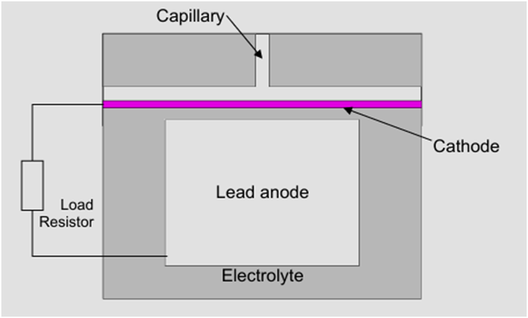 電化學(xué)氧氣傳感器通過(guò)電化學(xué)反應(yīng)將氧氣濃度轉(zhuǎn)化為電信號(hào)進(jìn)行量化。具體來(lái)說(shuō),當(dāng)混合氣體中的氧氣分子穿過(guò)傳感器一側(cè)的半透膜進(jìn)入電解液內(nèi)部時(shí),氧氣在陰極被還原為氫氧根離子(OH?),同時(shí)產(chǎn)生電子。這些電子通過(guò)外部電路回流至陽(yáng)極,形成閉合回路。還原與氧化反應(yīng)產(chǎn)生的電流與進(jìn)入電解液的氧氣濃度直接相關(guān),即氧氣濃度越高,產(chǎn)生的電流越大。通過(guò)精確測(cè)量并轉(zhuǎn)換此電流,即可確定混合氣體中氧氣的濃度。