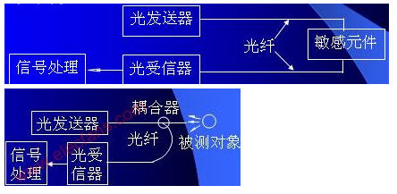 由光發(fā)送器發(fā)出的光經(jīng)源光纖引導(dǎo)至敏感元件。這時(shí),光的某一性質(zhì)受到被測(cè)量的調(diào)制,已調(diào)光經(jīng)接收光纖耦合到光接收器,使光信號(hào)變?yōu)殡娦盘?hào),最后經(jīng)信號(hào)處理得到所期待的被測(cè)量。