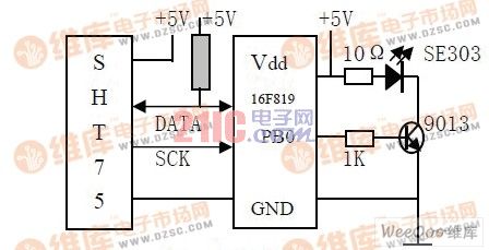 圖1中SHT75 是瑞士Sensirion公司推出的基于CMOSens技術(shù)的新型溫濕度傳感器。它是一種全新的基于智能設(shè)計理念的傳感器,該傳感器將溫度檢測、濕度檢 測、信號處理、數(shù)字變換、串行數(shù)字通信接口、數(shù)字校準全部集成到一個高集成度、體積很小的芯片當中,利用它可以同時測量目標對象的溫度和濕度,并實現(xiàn)數(shù)字式輸出。