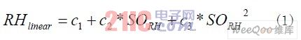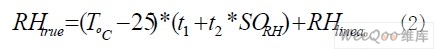 濕度值還和當前溫度值相關(guān),因此還要對其進行溫度補償,補償公式如公式(2)所示,各系數(shù)如表2所示。