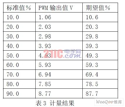 完成開發(fā)調(diào)試工作后,對產(chǎn)品進行了長時間的穩(wěn)定性測試,對存在的問題進行了改進。為了該變送器能更好地應用在實際項目中,還將其送到賽寶計量檢測中心進行計量。結(jié)果如表3 所示。、