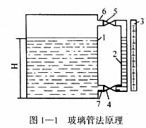 玻璃管法:該方法利用連通器原理工作,如圖1—1所示[1]。圖中1-被測容器;2-玻璃管;3-指示標度尺;4、5-閥;6、7-連通管。液位直接從指示標度尺讀出。