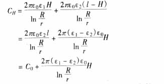 電容法:用于測量非導電液體的電容法原理如圖4—1所示[4]。圖4—1中,電容由兩塊同心的圓柱面極板組成,其電容量CH為