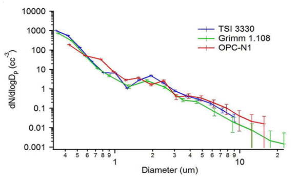 如以下 OPC-R2的比較圖所示,OPC-R2 和 OPC-N3 的性能與其他成本數百甚至數千英鎊的高端 OPC 設備相似。 Alphasense的OPC 傳感器在其尺寸和價位維度的出色性能也反映在加利福尼亞州南海岸 AQMD 最近進行的一份報告中,該報告包含OPC-N3 和 OPC-R2在低成本空氣質量傳感器性能方面的評估。 在性能和客戶期望方面,這兩款設備的表現都能超水平發揮。 您可以在以下網址獲取更多關于 AQMD 報告的信息:http://www.aqmd.gov/aq-spec